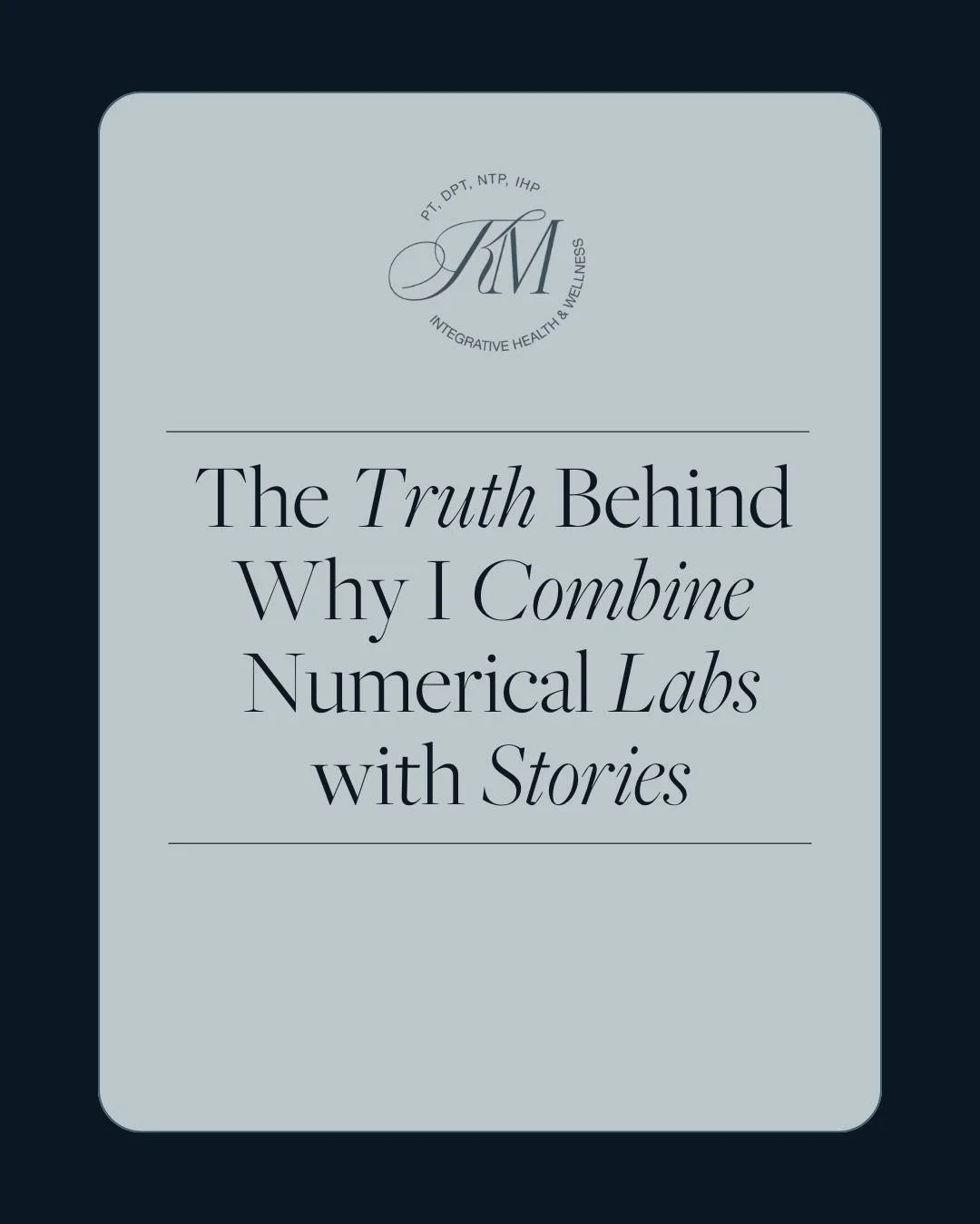I’m a nutrition therapy practitioner, integrative health practitioner and physical therapist. What those two titles help me do is bridge the gap between physical (outer) health from an anatomical/ signs and symptoms standpoint and inner health from a functional bloodwork/bioresonance standpoint. In PT school we were taught a lot about “differential diagnosis” which is the ability to pick apart a clients signs/symptoms and be able to differentiate between whether the problem could actually be left shoulder pain, for example, or a heart attack. With that type of knowledge and expertise, I am then able to find patterns in bloodwork and link them to those signs and symptoms.